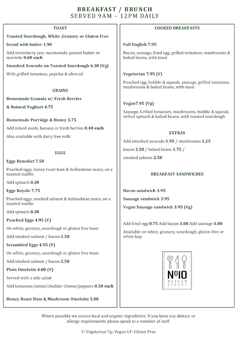 What makes No10 Museum Street stand out is its attention to quality ingredients and balanced flavors across all menu items. Whether you're in the mood for a light snack or a full meal, the variety and quality of the food ensure that it caters to all preferences. The ambiance, combined with excellent service, further enhances the dining experience, making it an ideal spot for both casual and special occasions.